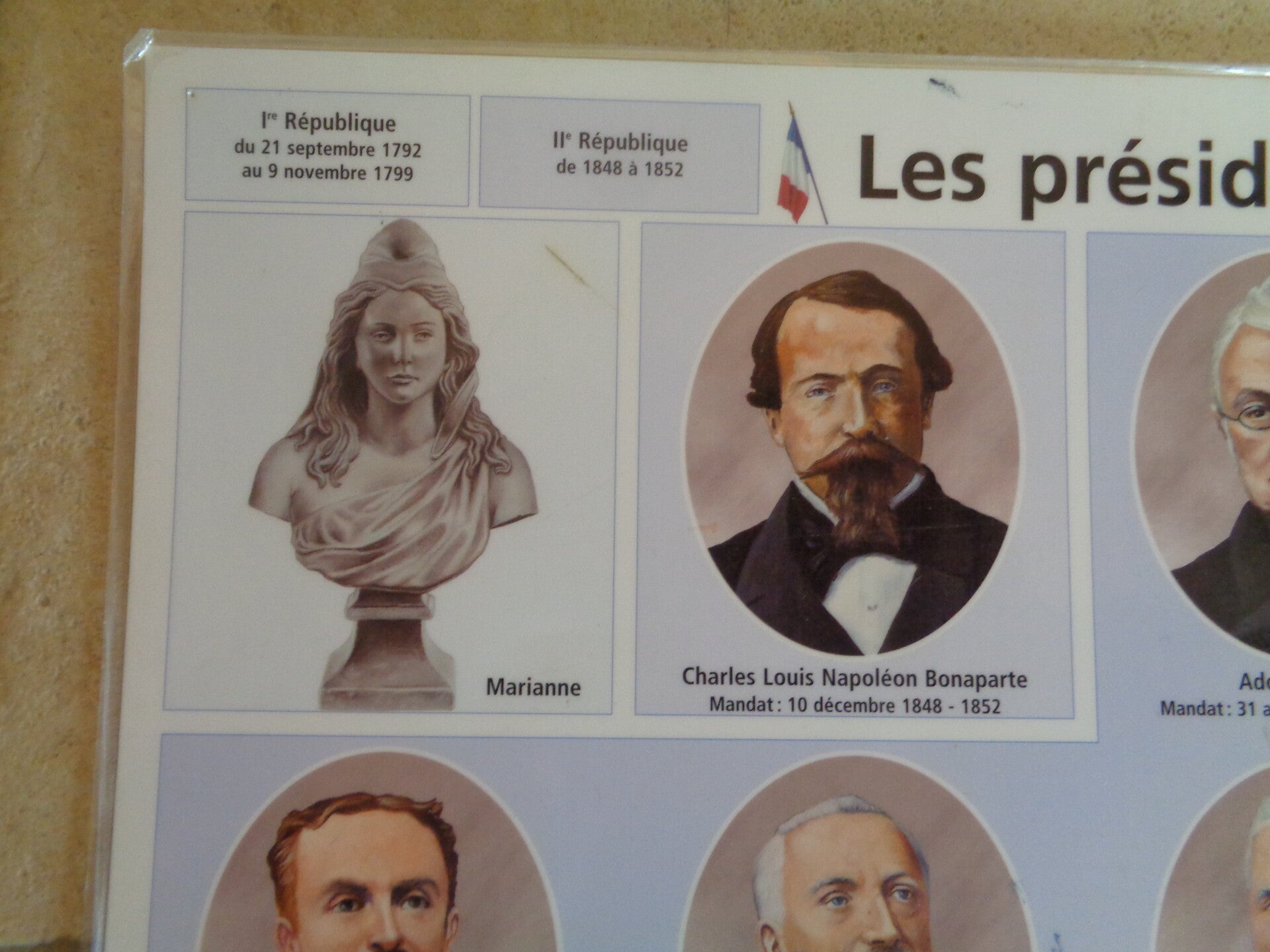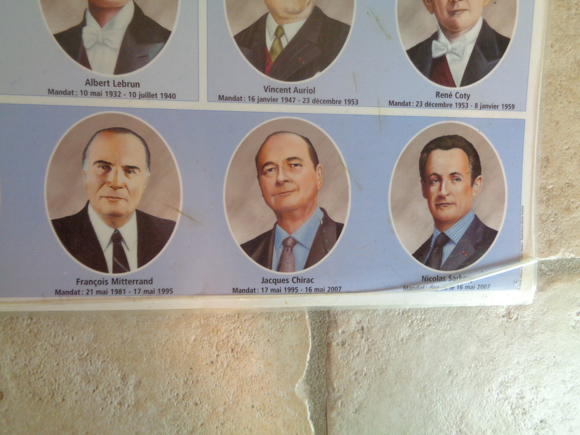 Affiche plastifiée répertoriant tous les Présidents de la République française