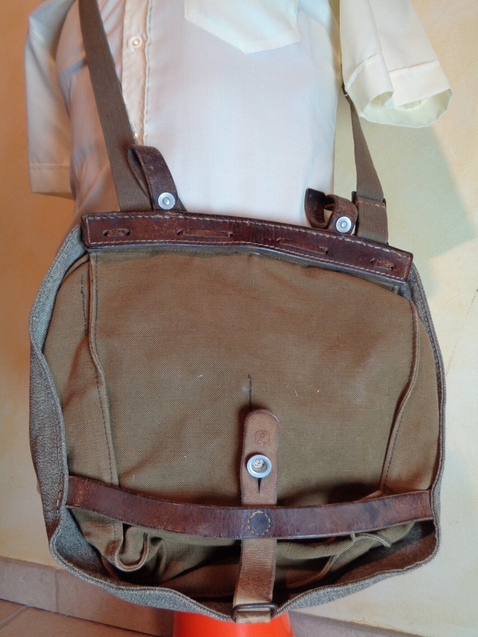 Musette de l'armée en toile et cuir des années 40